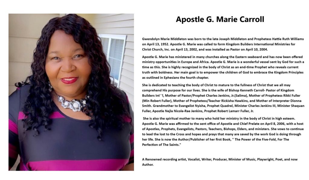 Chief Prelate of Kingdom Builders International Movement For Christ Inc.